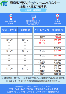 交通規制に伴い送迎バスの運行時刻が以下の通りに変更となります。