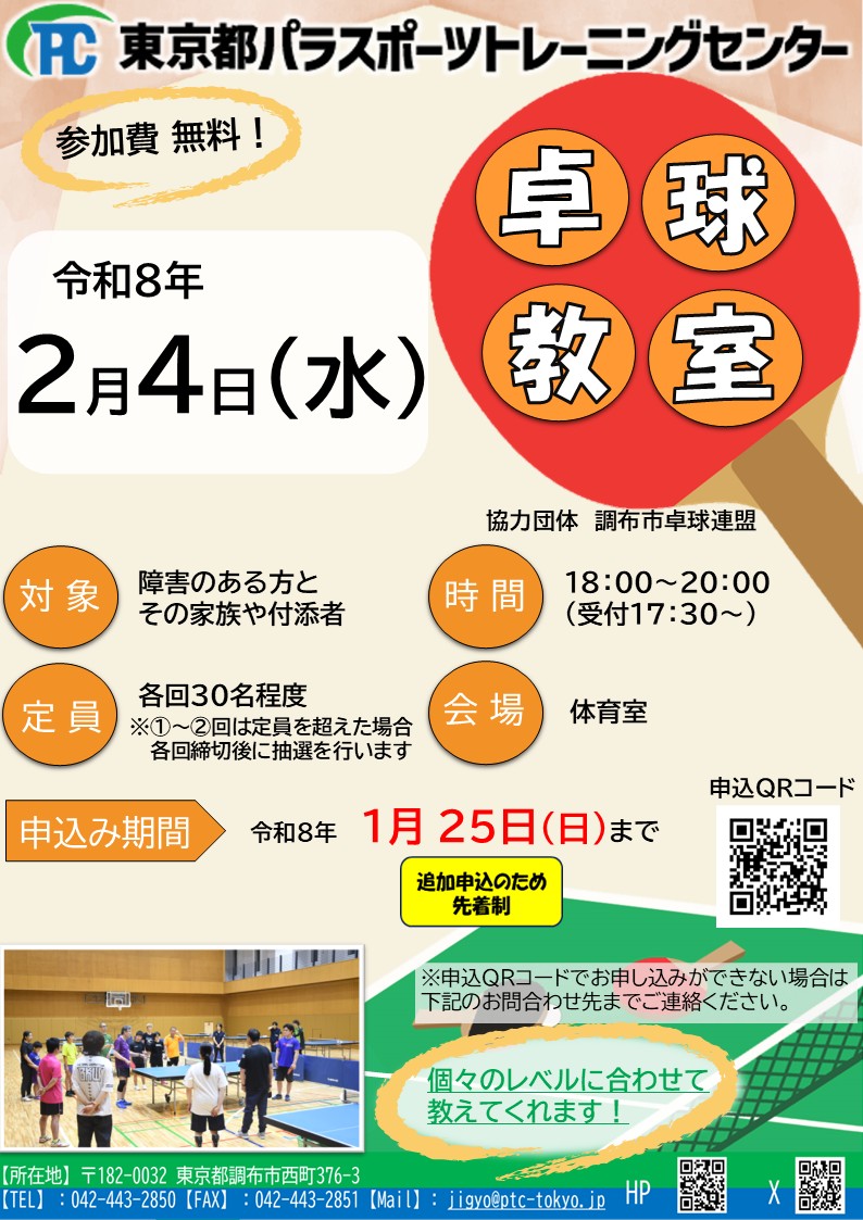 令和7年度 卓球教室の開催について