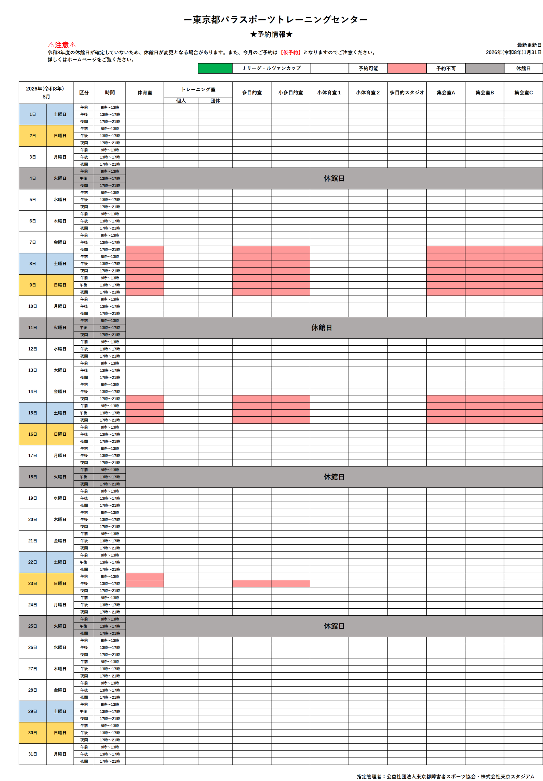 【対象団体:区分①】令和8年8月の【仮予約】申込について【事前申込】